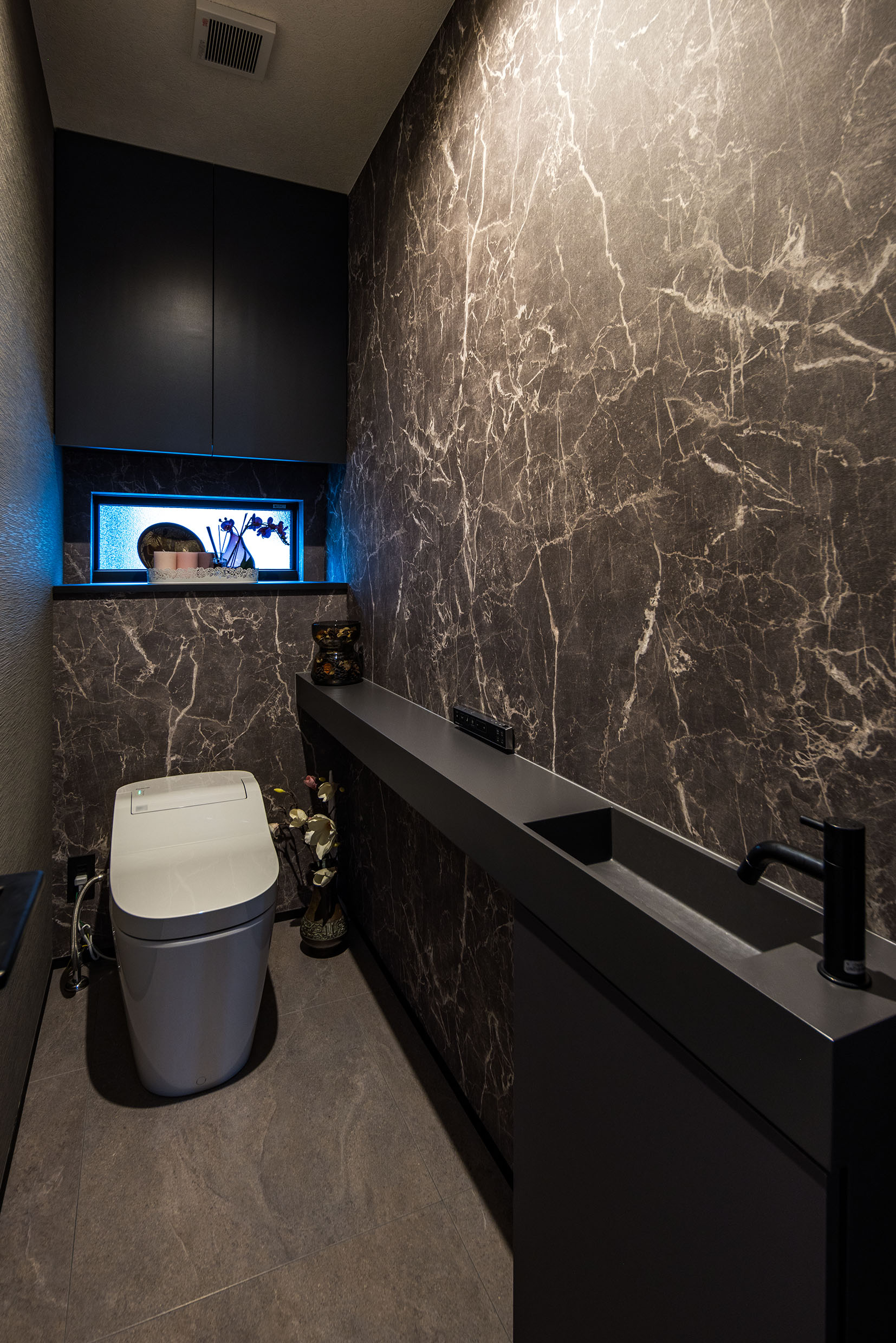 天然石と木の質感が、都市にいながらもリゾートのような安らぎをもたらします。