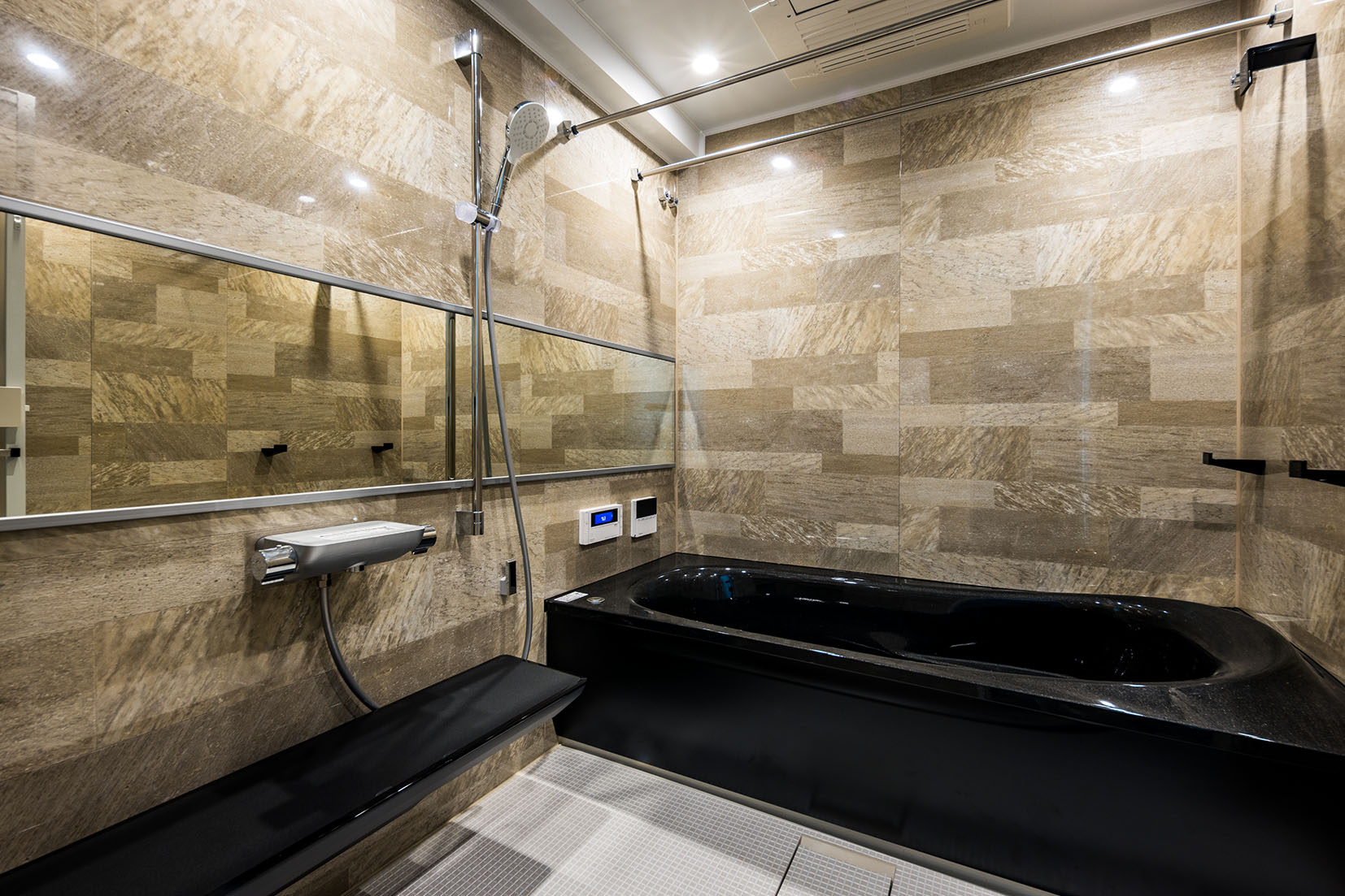 室内は、ベージュとホワイトマーブルの大理石を基調にナチュラルトーンで仕上げ、気品あふれる雰囲気を創出。