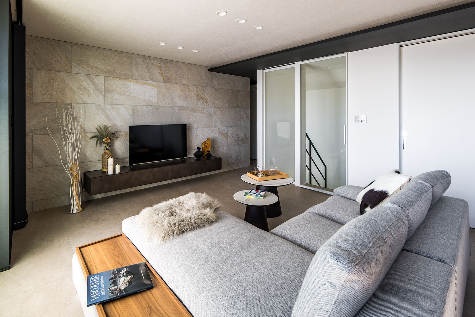 水平ラインを強調したデザインが相まって、存在感のある佇まいに。