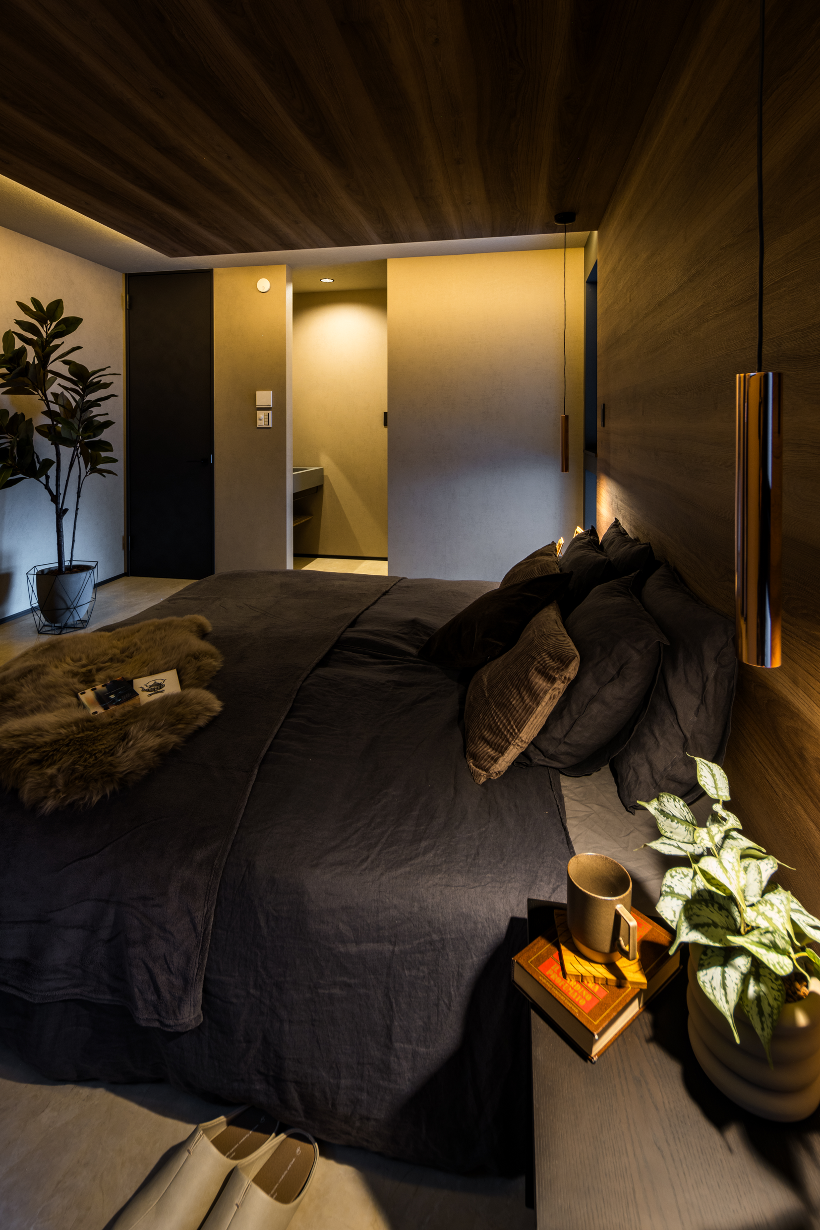 間接照明とペンダント照明を効果的に配し、時間帯によって表情を変える、静かな陰影を描きます。