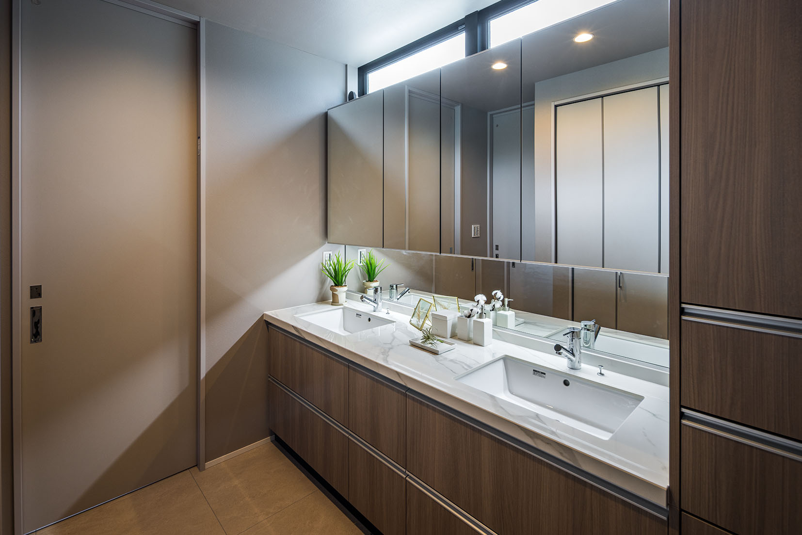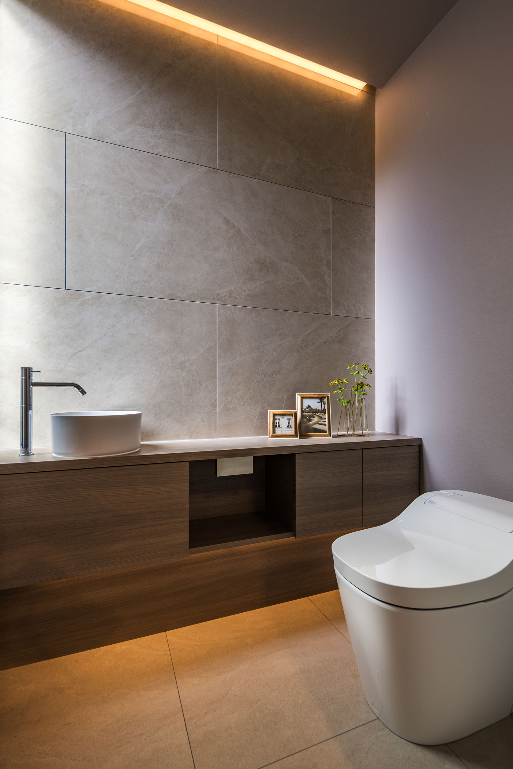 さらに照明計画や大理石などの素材感をプラスすることで、上質なホテルのような空間を創出しました。