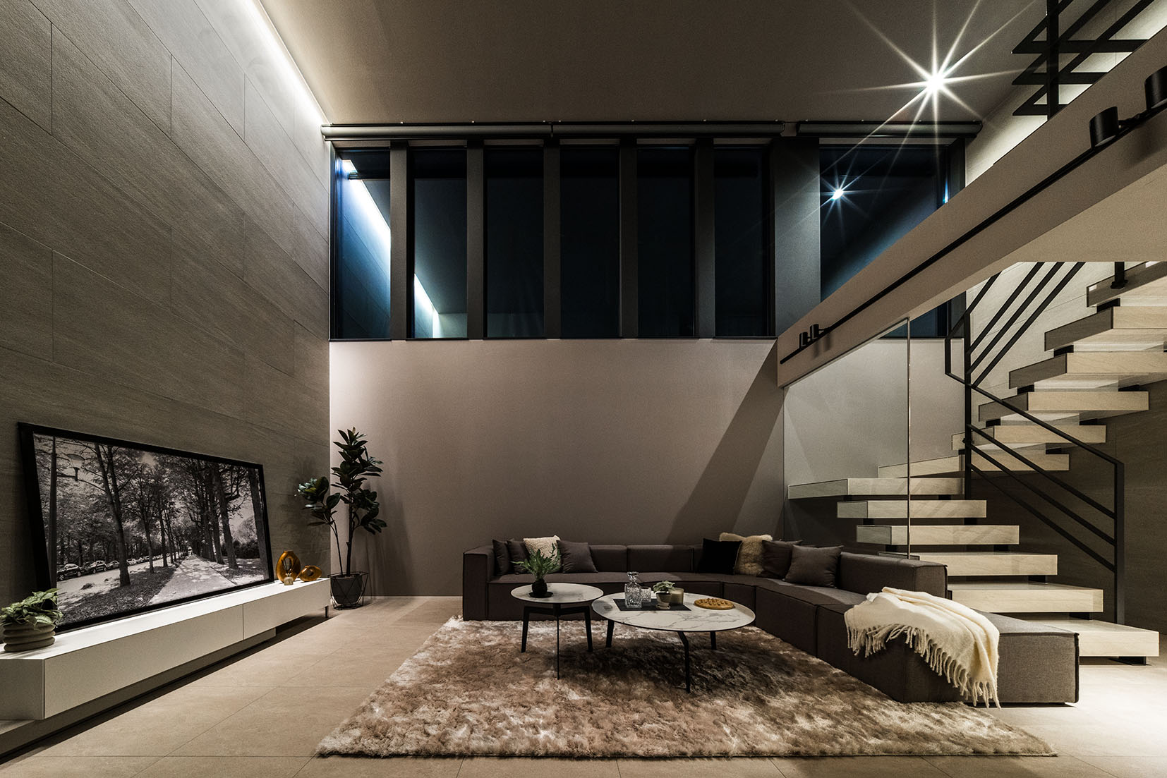 昼は光に包まれる開放感、夜はライティングが際立つラグジュアリーな雰囲気へ。
