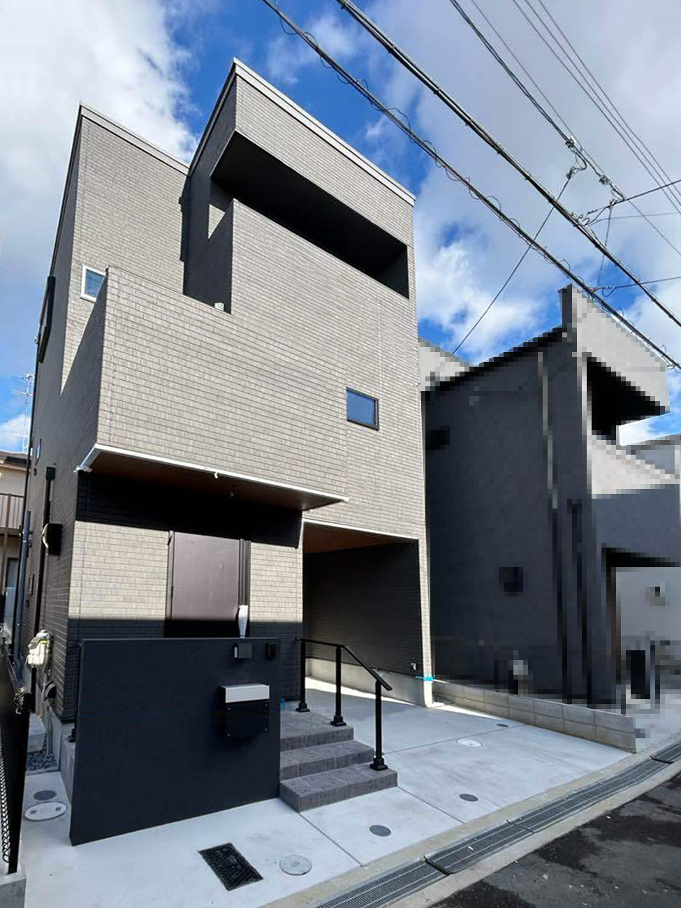 グレートーンで統一したファサードが、街並みに静かな存在感を放つ都市型住宅。