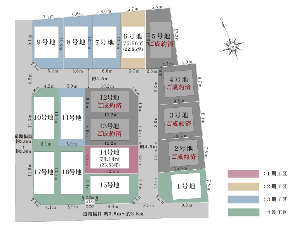 道路幅員 | 南西側 北西側 約3.6m~3.8m |